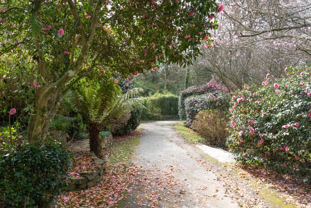We had explored most areas in Cornwall but we had always wanted to visit the Falmouth area which had so far eluded us, so we were really excited when the opportunity came up to visit the fabulous Budock Vean Hotel. Set in 65 acres on a quiet bend of the Helford River, this place just exudes tranquility with beautiful gardens and woodlands to stroll through as you walk down to the water’s edge. We arrived at the end of March, just prior to the Helford River Cruises commencing for the season. But we were going to explore the Helford scenery on dry land with the assistance of Paul, a local volunteer who kindly gave up his time on our arrival with his Dobermann rescue dog, Kai, to accompany myself, Sue, Matthew and Riley along the country lanes from the hotel to the small hamlet of Durgan four miles south of Falmouth. Just above Durgan you will find two beautiful landscaped gardens of Trebah and Glendurgan. You could just imagine this being the setting for a Secret Seven or Famous Five novel.